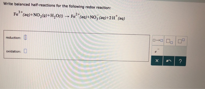 Iron(ii) ions are oxidized to iron(iii) ions as shown: \(\color{red}{\textbf{iron}}\) is therefore being \(\color{red}{\textbf{reduced}}\) and \(\color{blue}{\textbf{tin}}\) is the \(\color{blue}{\textbf{reducing agent}}\) (causing iron to be reduced). This is because i know i will recombine them in the final answer, so i wanted to easily preserve the 2:3 ratio of the as and the s. About press copyright contact us creators advertise developers terms privacy policy & safety how youtube works test new features press copyright contact us creators. What is a balanced redox equation? \(\text{fe}^{3+}\) is gaining an electron to become \(\text{fe}^{2+}\). This lesson walks through how to write half reactions for oxidation and reduction given a particular redox reaction.